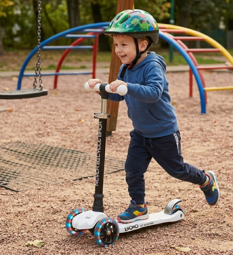 Na igralištima i parkovima širom svijeta, djeca se svakodnevno upuštaju u pustolovine na dva kotača, a njihovo oduševljenje i smijeh odzvanjaju zrakom. U mnoštvu dječjih igara, BOYO XT romobil izdvaja se kao pouzdan pratilac u igri, stvoren da osigura sigurnost i nezaboravne trenutke radosti. Zamislite kako vaše dijete zapanjeno promatra svjetleće kotače dok juri popločanim stazama parka, a vi stojite po strani, mirni i zadovoljni znajući da ste odabrali pravi romobil koji štiti najvažnije – njihov osmijeh i sigurnost.