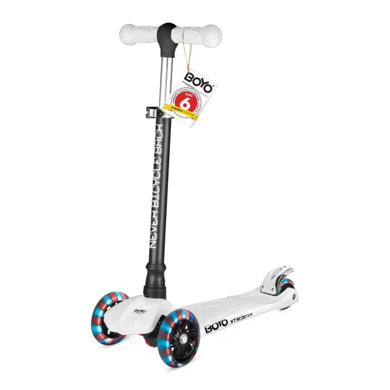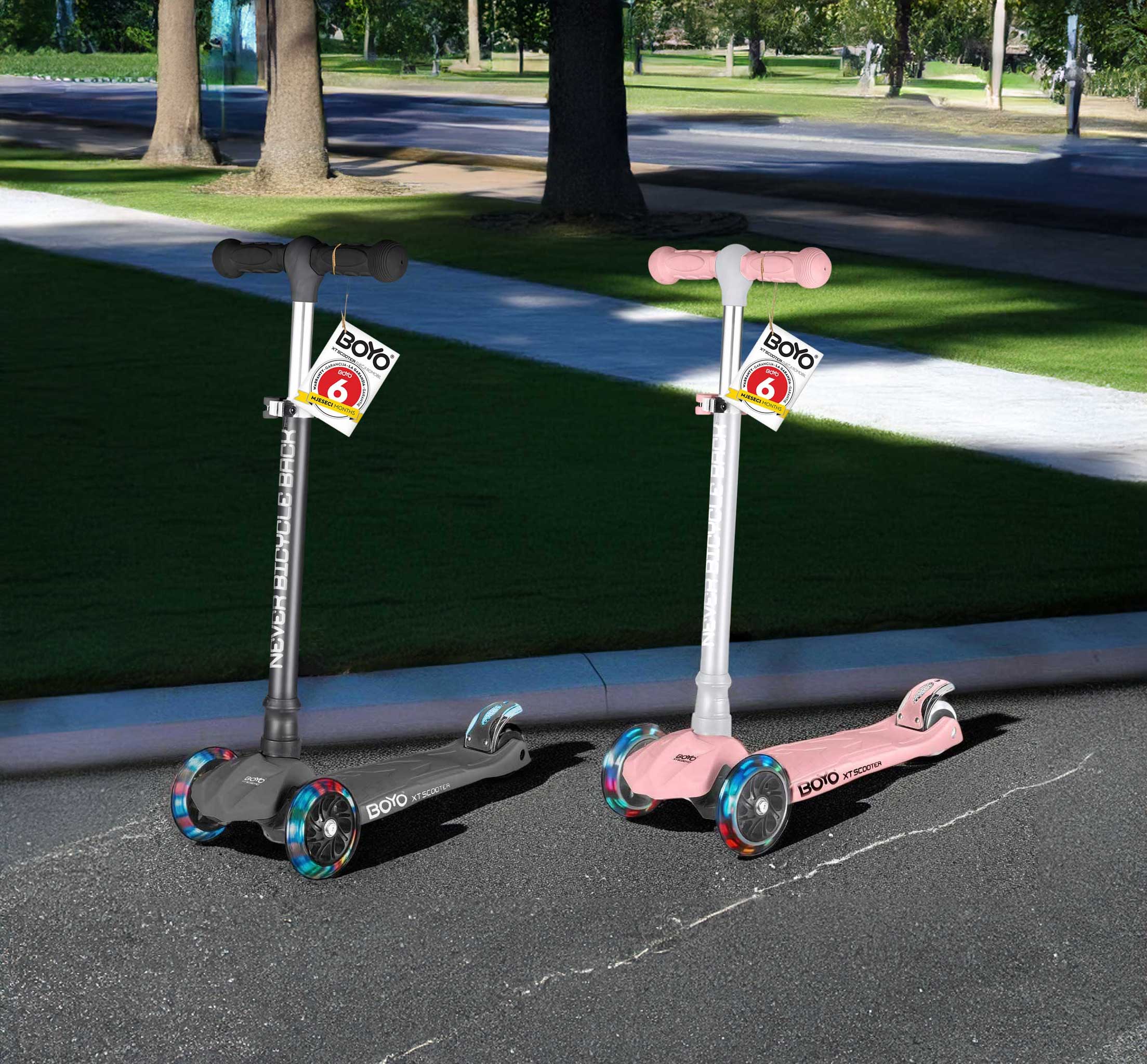 BOYO XT romobil predstavlja izvrsnu kombinaciju sigurnosti, praktičnosti i zabave, čineći ga idealnim izborom za djecu željnu avantura i roditelje koji traže mir. Njegova izdržljiva konstrukcija, inovativne sigurnosne značajke poput LED svjetala, i prilagodljivost koja prati rast vašeg djeteta, osiguravaju da će ovaj romobil biti dugotrajan suputnik u dječjim pustolovinama.