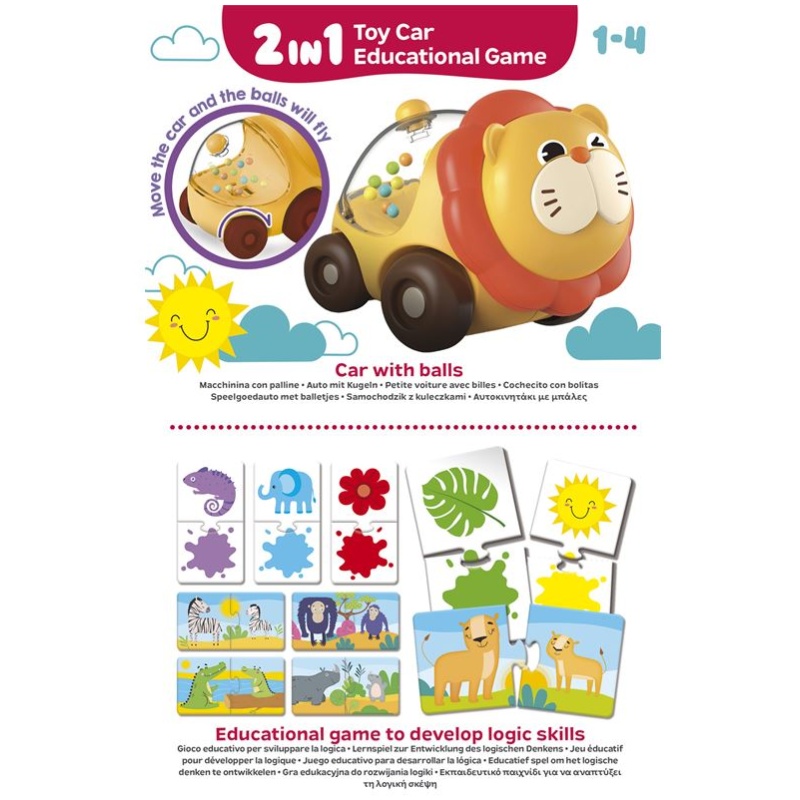Carotina Baby Logična Igra Lion Car je simpatična igračka – automobil s edukativnom igrom, namijenjena djeci u dobi od 1 do 4 godine. Ova igra vam pruža priliku da razvijate logičko razmišljanje i kreativnost dok se igrate sa slatkim lavljim automobilom.
