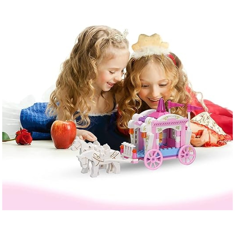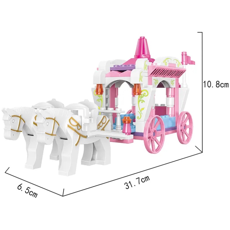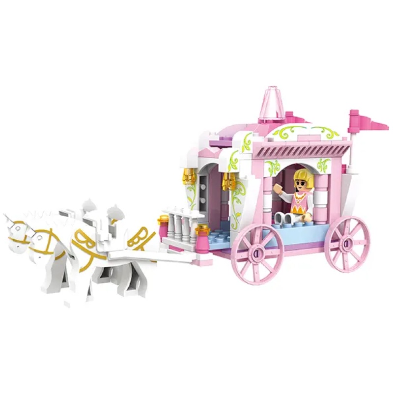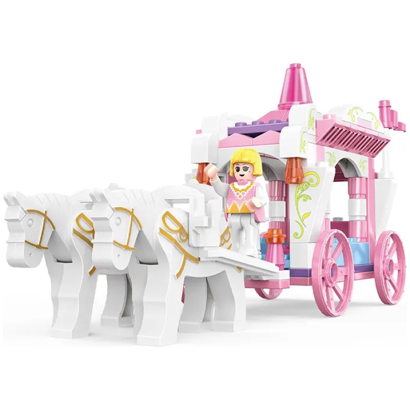 Složite sanjarsku kraljevsku kočiju iz snova koja se vuče sa 2 konja za princezu. Ova kočija može biti dio velike obitelji princezinog dvorca i pružiti brojne mogućnosti za igru uloga. Fantastičan svijet bajki upravo počinje, postanite princeza i istražite čaroliju!