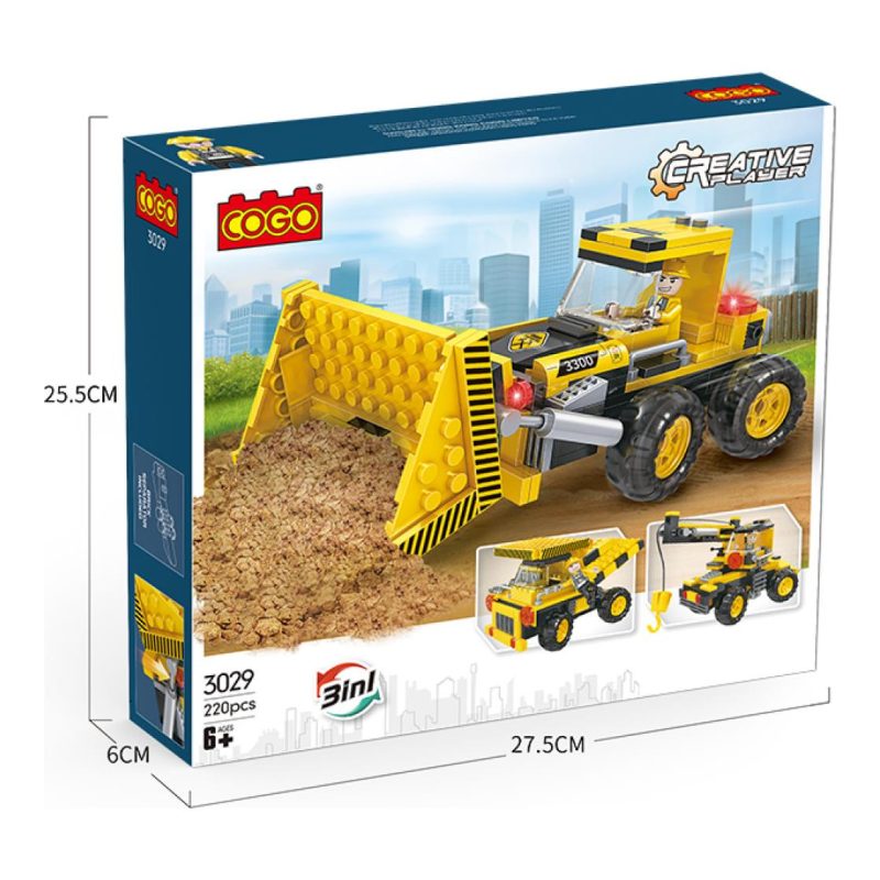 Izgradite i izazovite svoju maštu s COGO 3 u 1 setom za gradnju konstrukcijskih vozila, model 3029. Ovaj set uključuje čak 220 komada koji će vašem djetetu pružiti nevjerojatno zabavno i intelektualno iskustvo. Napravljen od visokokvalitetnog ABS plastičnog materijala, ovaj proizvod je izdržljiv i otporan na udarce, pružajući sigurnost vašem djetetu. Bez sadržaja štetnog BPA-a i sa precizno zaobljenim komadima, roditelji se ne moraju brinuti o zdravlju svoje bebe.