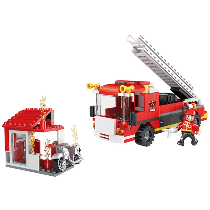 Vatrogasno Vozilo ima otvarajuća vrata na stražnjoj strani, proširivu vatrogasnu ljestvicu, vodeni top i klasične crvenu, crnu i žutu boju koje izgledaju izuzetno privlačno. Uz kamion, set dolazi i s kućicom s vatrom kao elementom za gradnju, motorom i vatrogascem, pružajući djeci uzbudljivo iskustvo uloga.