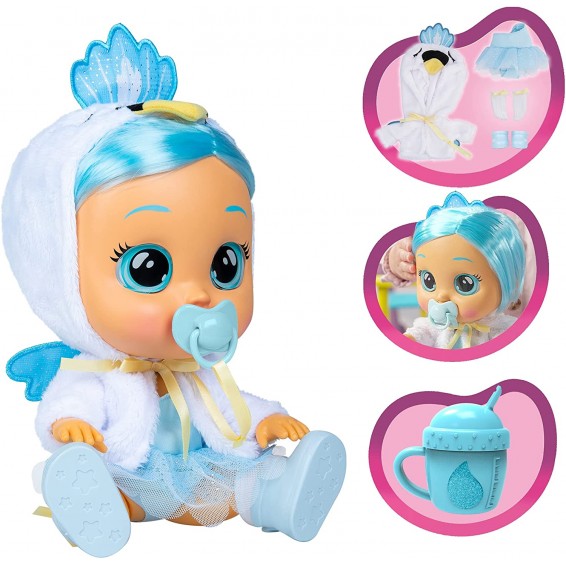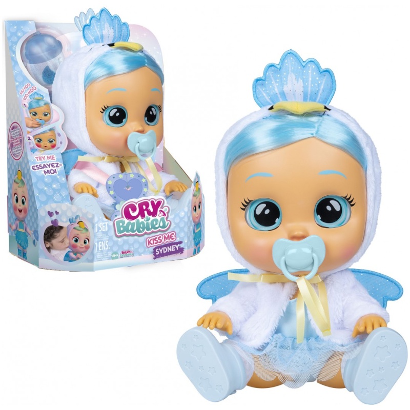 No, Sydney je više od obične bebe. Kada joj uzmeš cuclu, ona stvarno plače pravim suzama! Ali ne brini, možeš je brzo utješiti i smiriti – samo joj daj cuclu ili bočicu, ili je nježno uspavaj.