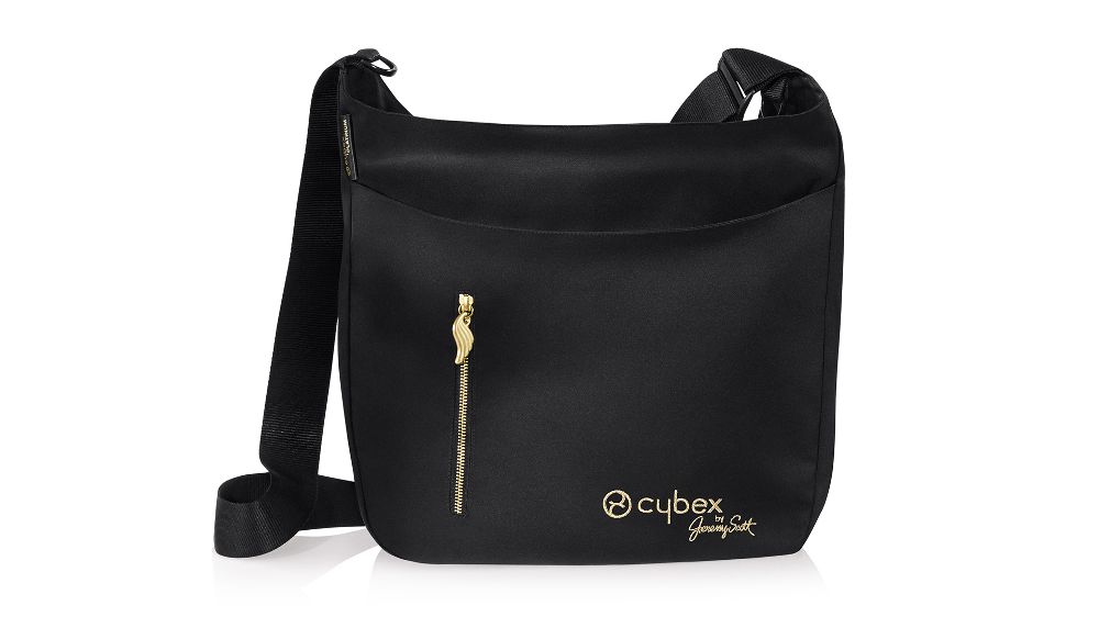 Visokokvalitetna torba s potpisom poznatog dizajnera Jeremy Scott od proizvođača Cybex. Decentne je crne boje sa zlatnim detaljima. Ima više džepova, podlogom za presvlačenje te držačem bočice.