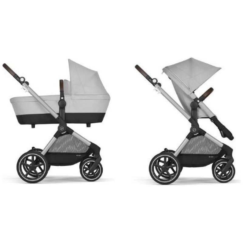 Eos Lux kolica prilagođavaju se rastu vaše bebe. Počnite s nosiljkom koja pruža udobnost i sigurno mjesto za vaše novorođenče. Kada vaše dijete počne sjediti, nosiljku možete pretvoriti u sjedalo zamjenom tkanine koja je pričvršćena na okvir kolica. Na taj način vaše dijete može udobno putovati sve do četvrte godine. Ovaj sustav putovanja omogućuje vam glatku tranziciju iz automobila u kolica. Zahvaljujući terenskim kotačima i prednjem ovjesu, nepravilne površine više nisu problem. Eos Lux: 2-u-1 dječja kolica.