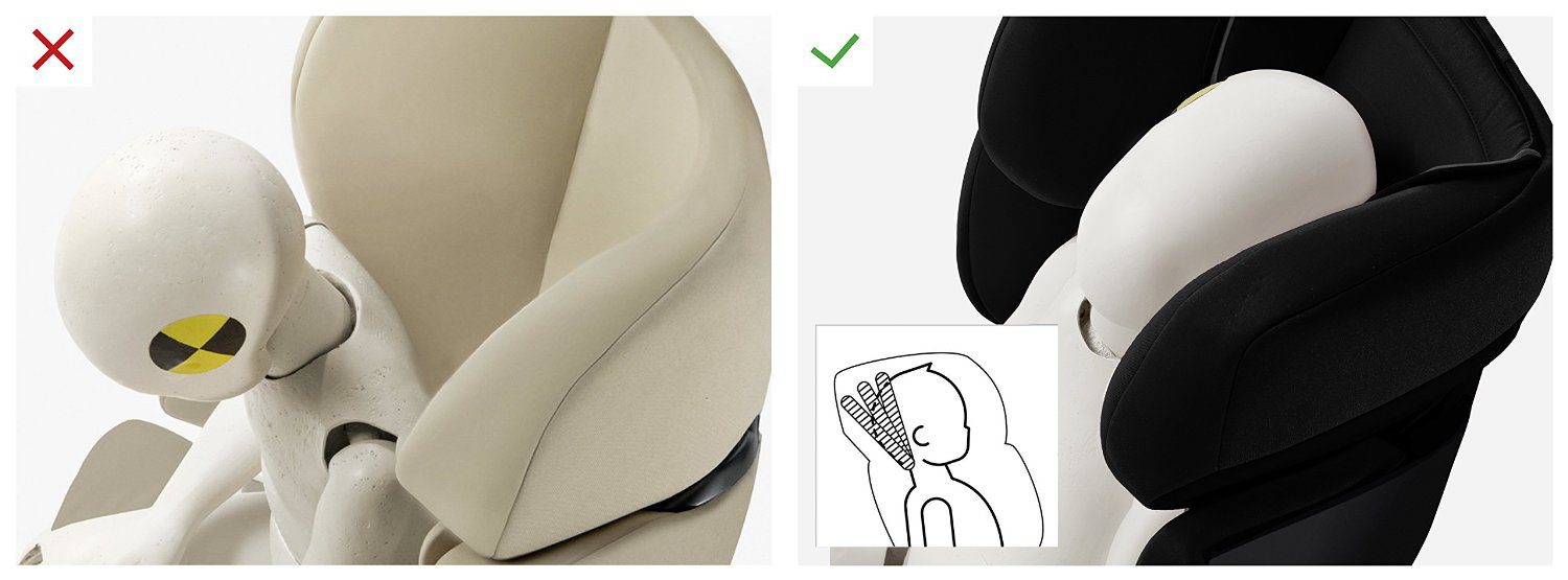 Novo dizajnirani sigurnosni jastuk se pomjera naprijed i natrag i nudi više slobode pokreta za gornji dio tijela kao i maksimalnu sigurnost, posebno u prednjim udarima kada se uspoređuje sa konvencionalnim sistemom pojasa u pet točaka. Sile udara su raspoređene preko sigurnosnog jastuka i umanjene njegovim materijalima koji apsorbiraju udarce. Ovaj sustav je sličan napuhanom zračnom jastuku i pomaže značajno smanjiti sile u slučaju nesreće. Pojas ne ozljeđuje dijete dok su u isto vrijeme njegov vrat i područje oko ramena zaštićeni.