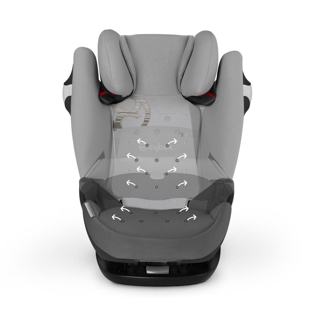 U grupi 1, podesivi sigurnosni jastuk funkcionira kao zračni jastuk u slučaju sudara, štiteći od težih ozljeda vrata. Za djecu nakon 3 godine, sjedalica se može jednostavno pretvoriti u Solution M-fix. Može se postaviti i u automobilima bez ISOFIX sustava.