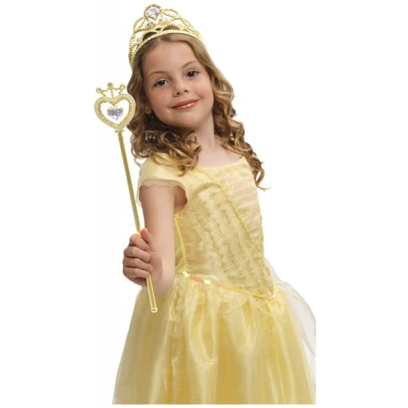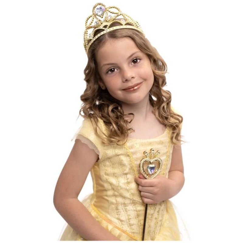 Ovaj set sadrži predivnu zlatnu tiaru i  šareni čarobni štapić s ugrađenim ornamentalnim detaljima. Izrađeni od kvalitetnog materijala, ovi dodaci su izdržljivi i mogu izdržati sate i sate igre.
