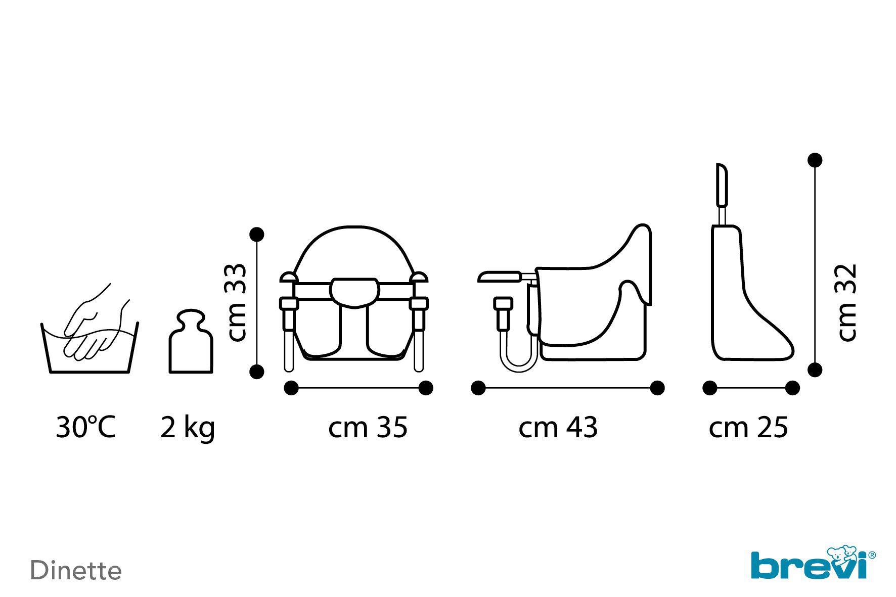 Praktična hranilica koja se pričvrsti za stol proizvođača Brevi. Omogućava vašem djetetu hranjenje za stolom u potpunoj sigurnosti vašeg doma. Podstavljeni ergonomski naslon pokriva čvrstu podlogu hranilice i opremljen je stražnjim pretincem i sigurnosnim pojasevima. Univerzalna sponka sigurna je i jednostavna za uporabu, a pomoću podesivih vijaka lako se montira na sve tipove stolova. Namjenjeno za djecu do 15 kg.