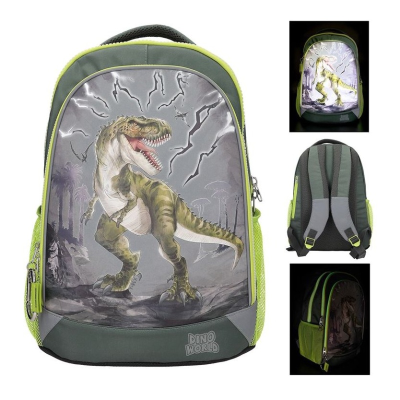 Sa svojim zeleno-sivim dizajnom i uzbudljivim motivom T-rexa okruženog opasnim munjama, privući će pažnju svakog djeteta. Ono što ga čini stvarno posebnim je njegova reflektirajuća pozadina. Kada svjetlost padne na ruksak, pozadina zasja, povećavajući vidljivost vašeg djeteta u uvjetima slabije osvjetljenosti. To ga čini savršenim izborom za sve male istraživače koji se vole isticati, ali i za roditelje koji brinu o sigurnosti svoje djece.