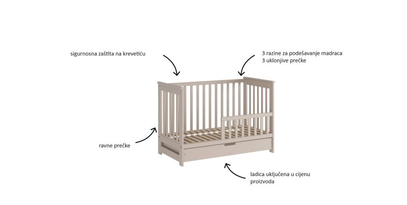 Ne propustite priliku da svom djetetu pružite najbolje. Odaberite Klups Iwo dječji krevetac s ladicom i ogradom u prekrasnoj bež boji i stvorite prostor koji će oduševiti i vaše dijete i sve goste koji ga posjete. Kliknite ovdje da biste danas naručili svoj Klups Iwo krevetac i osigurali miran i sretan san vašem mališanu.