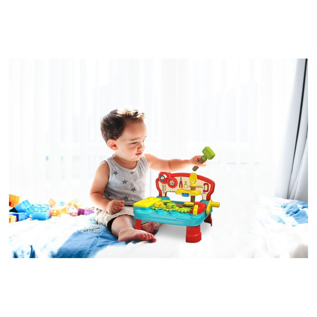 Ova razigrana Montessori aktivna igračka pretvara svaki trenutak igre u priliku za učenje i otkrivanje. Jednostavnim, ali pametno osmišljenim dizajnom, pomaže djeci razvijati fine motoričke vještine, logičko razmišljanje i koncentraciju – kroz zabavu i stvarno iskustvo rada. Sve što je potrebno za sate maštovite igre dolazi uključeno: čekić, odvijač, vijci, podlošci i još mnogo dodataka.