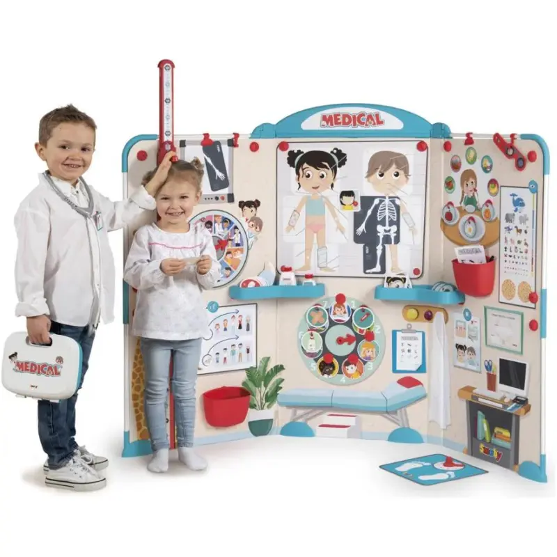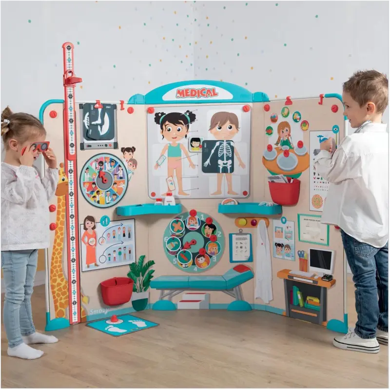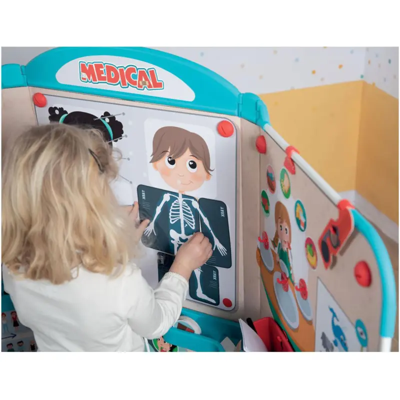 Jedinstveni dizajn ovog seta omogućuje djeci da istražuju i uče kroz igru. U njemu će pronaći mnogo funkcija koje su povezane sa svijetom medicine, kao što su radiološki kutak, prepoznavanje dijelova tijela, odjeljak s prehranom, dijagram oka i grafikon rasta.