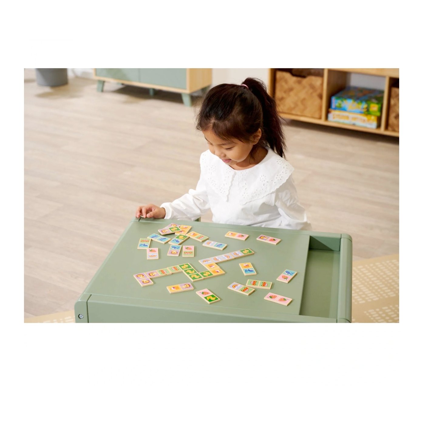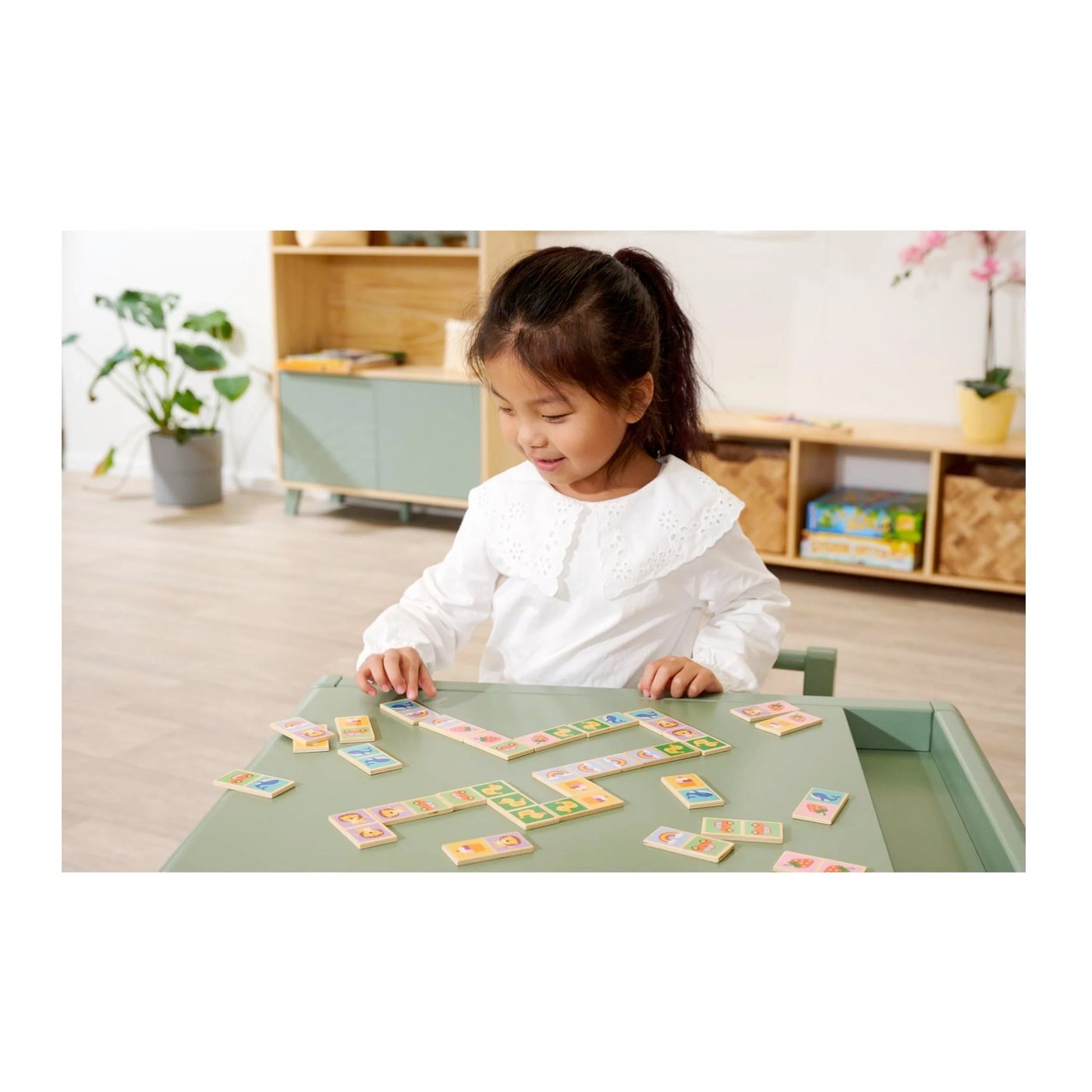 Ilustracije s motivima životinja i živopisnih simbola potiču prepoznavanje uzoraka i razvoj kognitivnih sposobnosti vašeg djeteta. Dok se mališani igraju s pločicama idealnih dimenzija od 6 x 3 cm, koje savršeno pristaju u njihove ruke, razvijaju motoričke vještine i kreativnost na najzabavniji način.