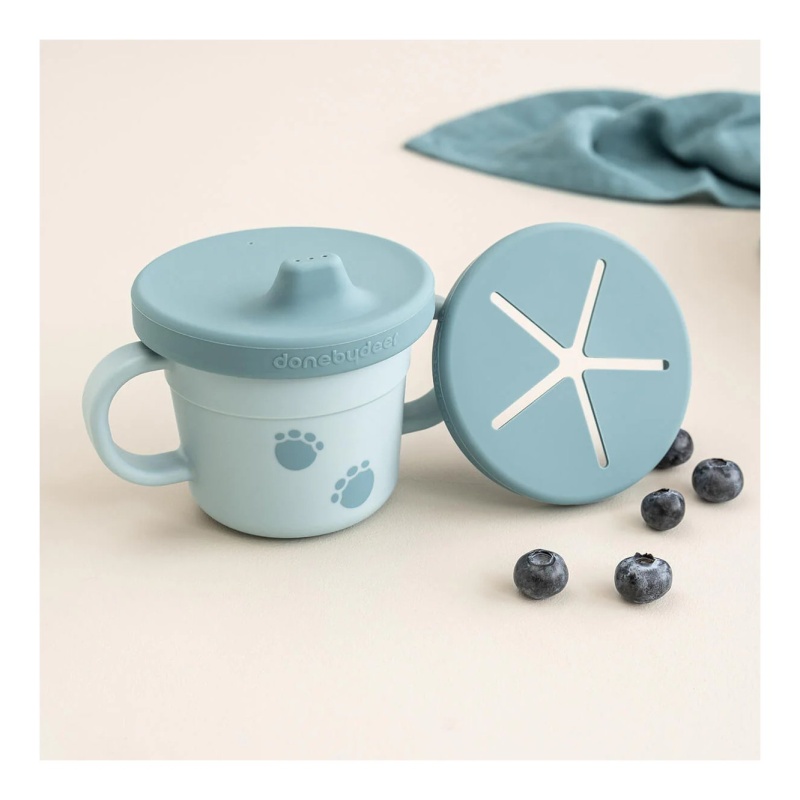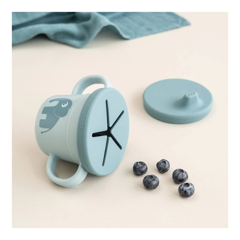 Predstavljamo Done by Deer – Čašu za grickalice Foodie, Elphee Blue. Savršeno rješenje za roditelje koji traže praktičnost i stil u jednom proizvodu. Ovaj inovativni 3-u-1 komplet osmišljen je kako bi olakšao prve korake vašeg djeteta u samostalnom hranjenju i pijenju. Kompaktna veličina i elegantan dizajn čine ga idealnim suputnikom na svakom obiteljskom izletu.