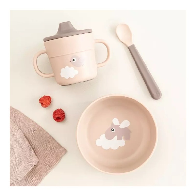 Zamislite osmijeh na licu vašeg mališana kada ga prati povorka oblaka i prijatelja dok otkriva novi svijet okusa. Ovaj set nije samo praktičan, već i trajno pamtljiv. Napravljen od materijala koji se mogu reciklirati, ovaj set govori i o vašoj brizi za okoliš. Kada završi s upotrebom, jednostavno ga razvrstajte kao plastiku i dajte mu novi život u obliku drugih svakodnevnih proizvoda.