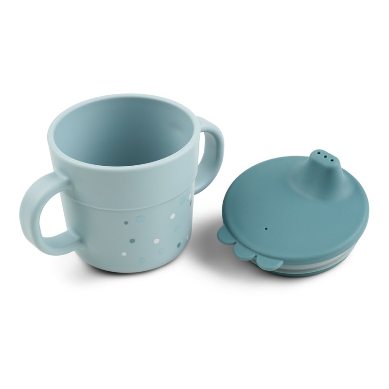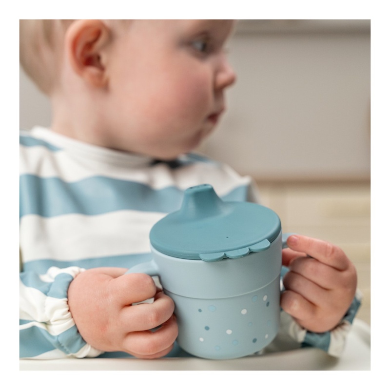 Zamislite osmijeh na licu vašeg djeteta dok samostalno drži šalicu i ponosno pije omiljeni napitak. Ova šalica je dizajnirana s pažnjom prema detaljima i potrebama najmlađih. S poklopcem koji se lako skida, šalica se brzo transformira iz pomagala za učenje u pravu šalicu, prilagođavajući se razvojnim fazama vašeg djeteta i osiguravajući dugotrajnu upotrebu. Razigrane točkice dodaju dozu veselja svakom obroku, čineći ga posebnim trenutkom dana.