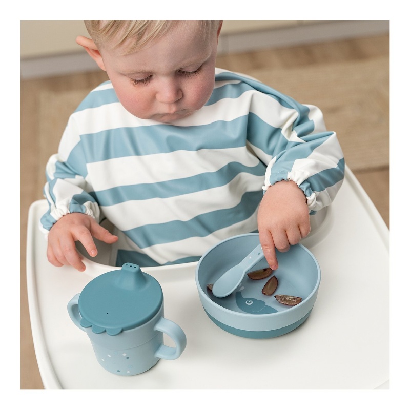 Tražite savršen pribor za jelo za svoje najmlađe? Predstavljamo vam Done By Deer set za jelo Happy Dots Blue, osmišljen kako bi svakodnevni obrok pretvorio u zabavno i sigurno iskustvo. Ovaj neodoljiv set dolazi u prekrasnoj plavoj boji s veselim točkicama koje će oduševiti svako dijete i potaknuti ga na samostalno istraživanje u svijetu hrane.