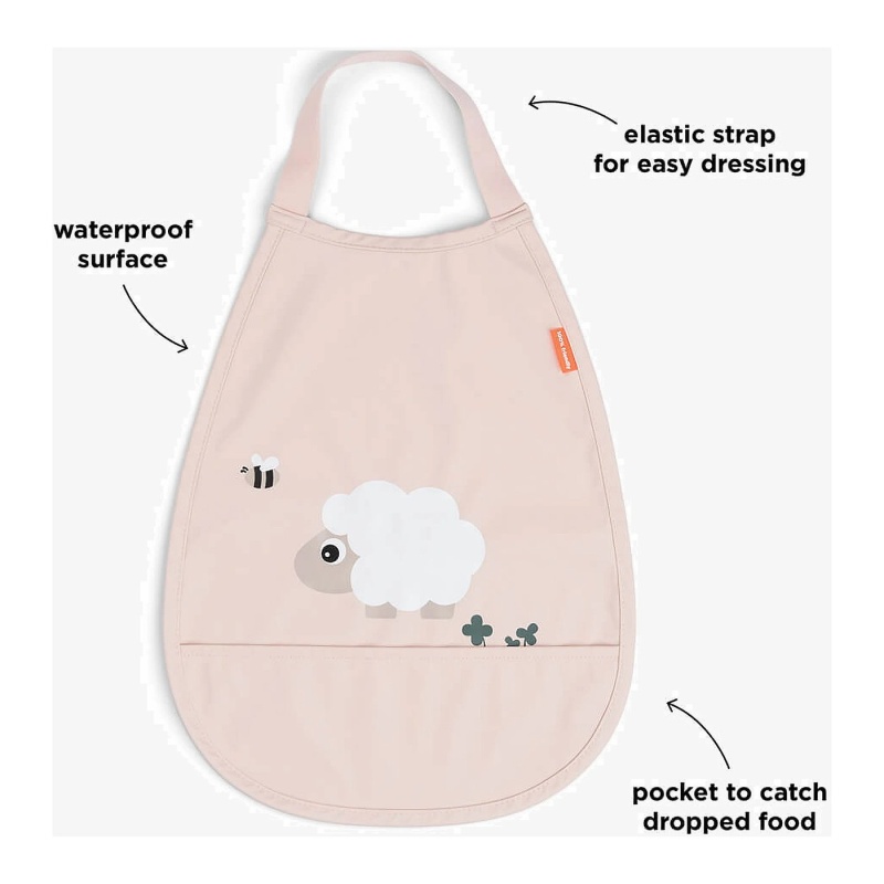 Savršen dodatak za svakog roditelja koji traži praktičan, a opet šarmantan način da zaštiti odjeću svog mališana tijekom obroka. Ovaj pregačica nije samo funkcionalan, već i estetski privlačan s očaravajućim motivom ovčice i pčelice. Proizvod je izrađen od kvalitetnog poliestera s poliuretanskim vanjskim slojem, što ga čini izdržljivim i lakim za održavanje.