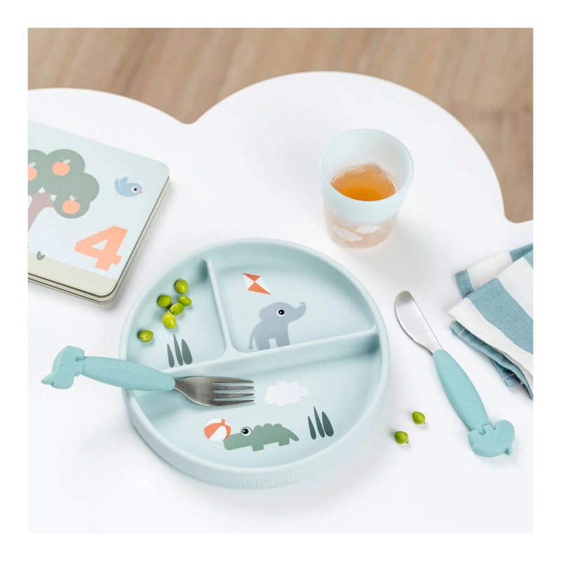 Pobudite želju za posjedovanjem ovog tanjura, ne samo zbog njegove izdržljivosti već i zbog njegovog estetski privlačnog dizajna. Tanjur dolazi u prekrasnoj plavoj boji s motivima simpatičnih prijatelja Elphee i Croco koji će zasigurno razveseliti vašeg mališana i potaknuti ga da istražuje svijet hrane s osmijehom.