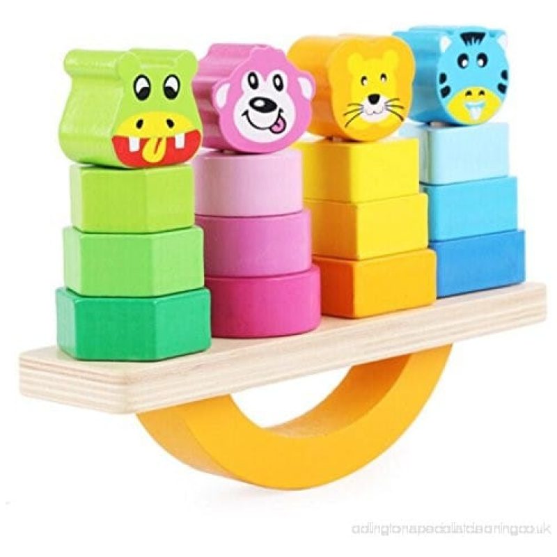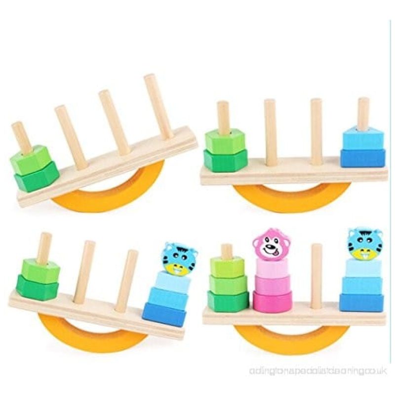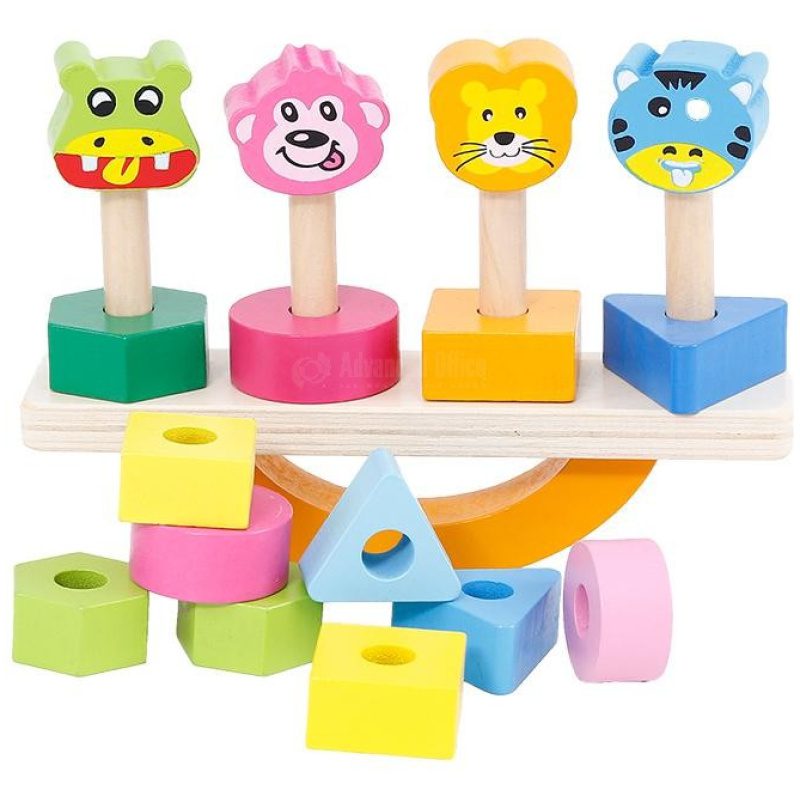 Stavite blokove oblika na stup ravnoteže, a daska je nagnuta na jednu stranu. Neka beba stavi građevne blokove na drugu stranu kako bi stup ravnoteže bio u linearnoj ravnoteži, vježbajte bebinu sposobnost ravnoteže. Poboljšava vještine slaganja oblika i koordinaciju ruke i oka. Poboljšava dječju koordinaciju i koncentraciju.