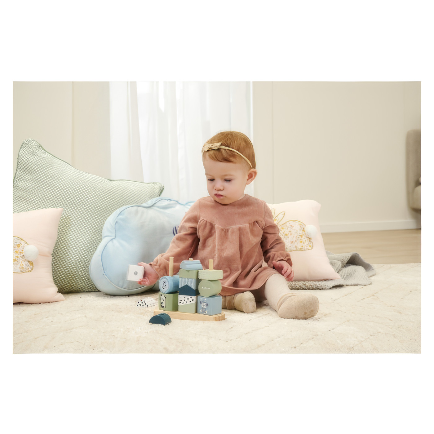 Već od prve godine života, mališani kroz slaganje prstenova razvijaju finiu motoriku i koordinaciju ruka-oko, a pri svakom novom pokušaju uče razlikovati boje i oblike. Jednostavna, ali pametno osmišljena igračka postaje omiljeni saveznik u prvim koracima djetetovog razvoja. Čvrsta baza i zaobljeni stup jamče sigurnu igru, dok su svi materijali provjereno sigurni i nježni za male ruke.
