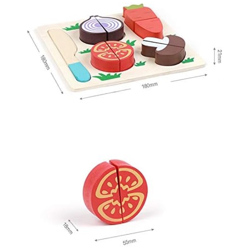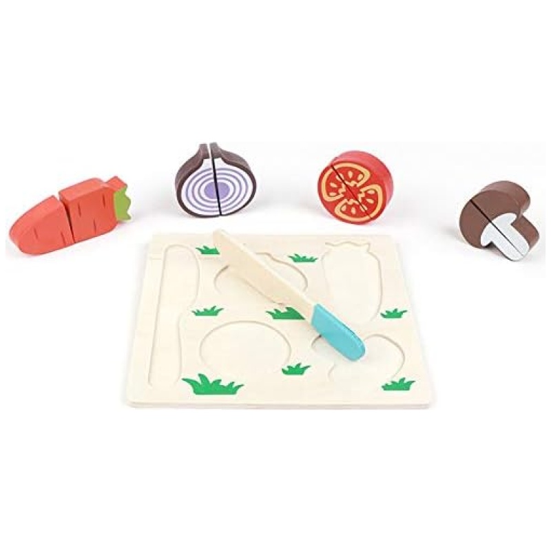 Osim što će vaše dijete uživati u slaganju puzzli, ovaj set također omogućuje i igru rezanja povrća. Dajte vašem djetetu drveni nožić i dopustite mu da samostalno pokuša izrezati povrće. Na taj način razvijat će se koordinacija između ruke i mozga, te će se poboljšati sposobnost prepoznavanja i manipulacije objektima.