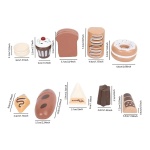 Set uključuje realistične simulacije raznih deserata, omogućavajući djeci da prepoznaju svakodnevne predmete i sastojke. Ova interaktivna komponenta ne samo da ih zabavlja, već ih i educira, potičući ih da istražuju svijet okusa i mirisa.