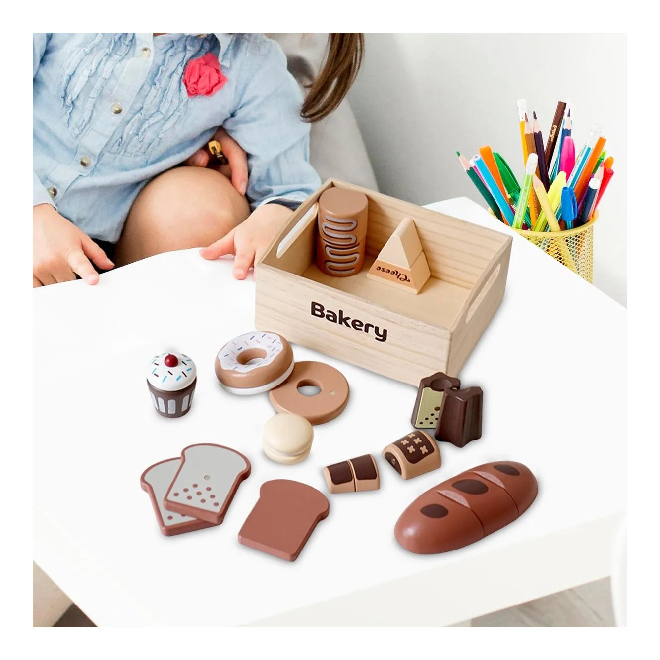 Zamislite svijet u kojem vaše dijete postaje mali kuhar koji otkriva tajne kulinarskog svijeta kroz igru. Drvena Igračka kolači i pecivo nije samo obična igračka, već most između dječje mašte i stvarnog života. Napravljena od prirodnog drva, ova kuhinjska igračka osigurava da vaša djeca osjete dodir prirode dok se zabavljaju.