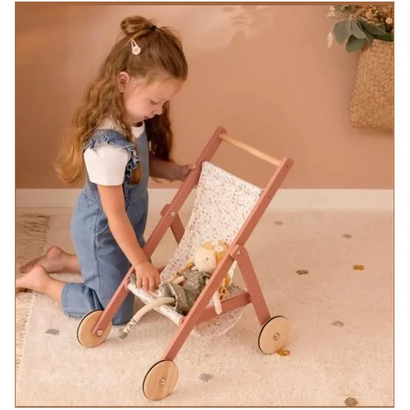 Prošetajte svoje lutke kao pravi roditelj i stvorite nevjerojatan trenutak s Little Dutch Drvenim Kolica za Lutke Flowers & Butterflies!