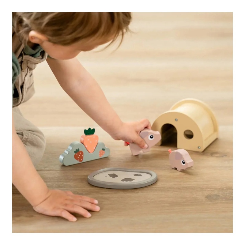 Jedinstvena značajka ove igračke je njezina savršena prilagodba malenim dječjim rukama. Svaki komadić pažljivo je dizajniran kako bi bio lako uhvatljiv, omogućujući djeci da s lakoćom istražuju svijet oko sebe. Izrađena od održivo dobivenog drva i obojana sigurnim bojama na bazi vode, ova igračka nije samo sigurna, već i prijateljska prema okolišu. Kombiniranjem s drugim Tiny Farm kompletima, mališani mogu proširiti svoje igre i stvarati još bogatije priče.
