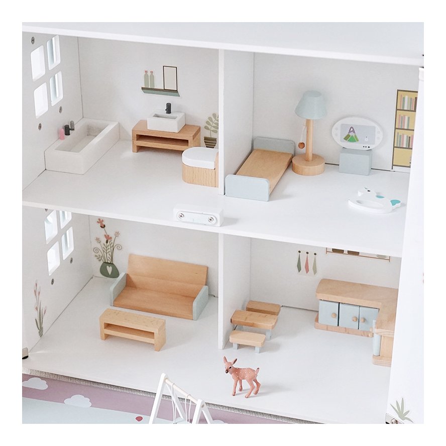 Zamislite prizor – vaša djevojčica ureduje svoju kućicu, smješta namještaj po vlastitom ukusu i pušta svoju maštu da leti. Svaka soba postaje novo platno za izražavanje kreativnosti, a mogućnosti su beskonačne. Zahvaljujući promišljenom dizajnu i pastelnoj paleti boja, ova kućica će se savršeno uklopiti u svaku dječju sobu, donoseći sa sobom dašak elegancije i topline.