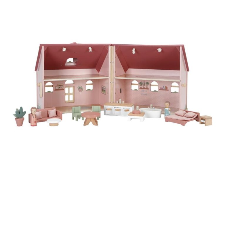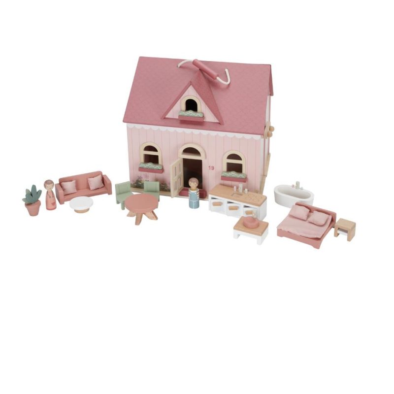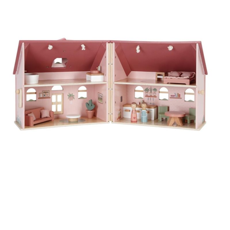 - Drvena kućica za lutke s figuricama i namještajem.