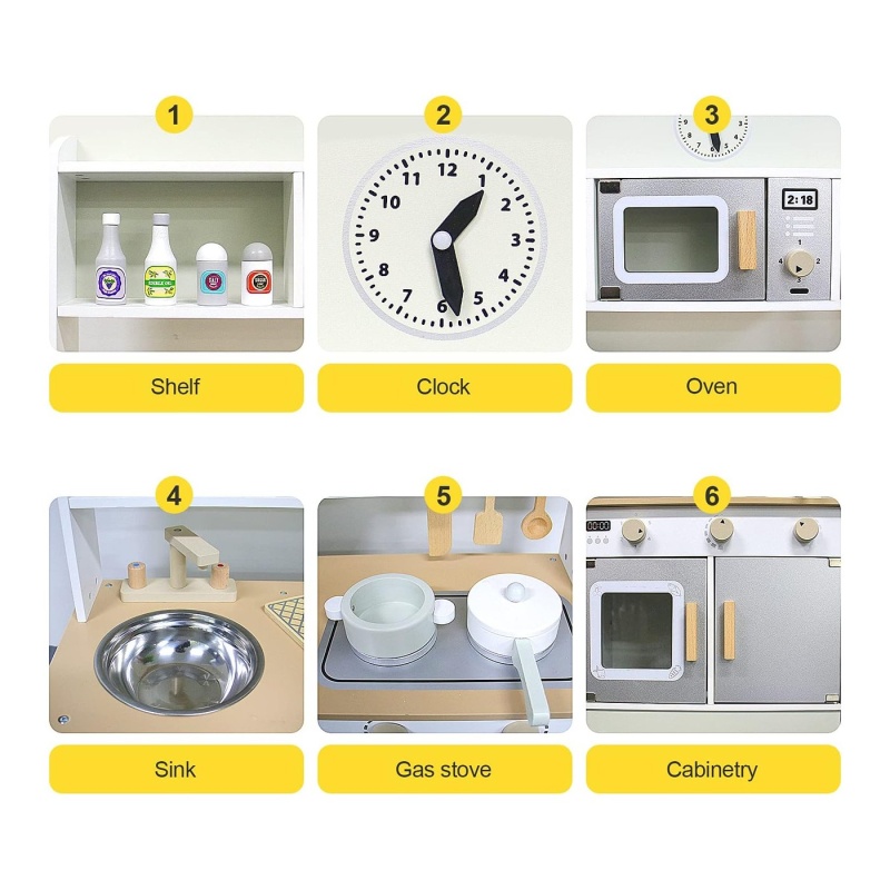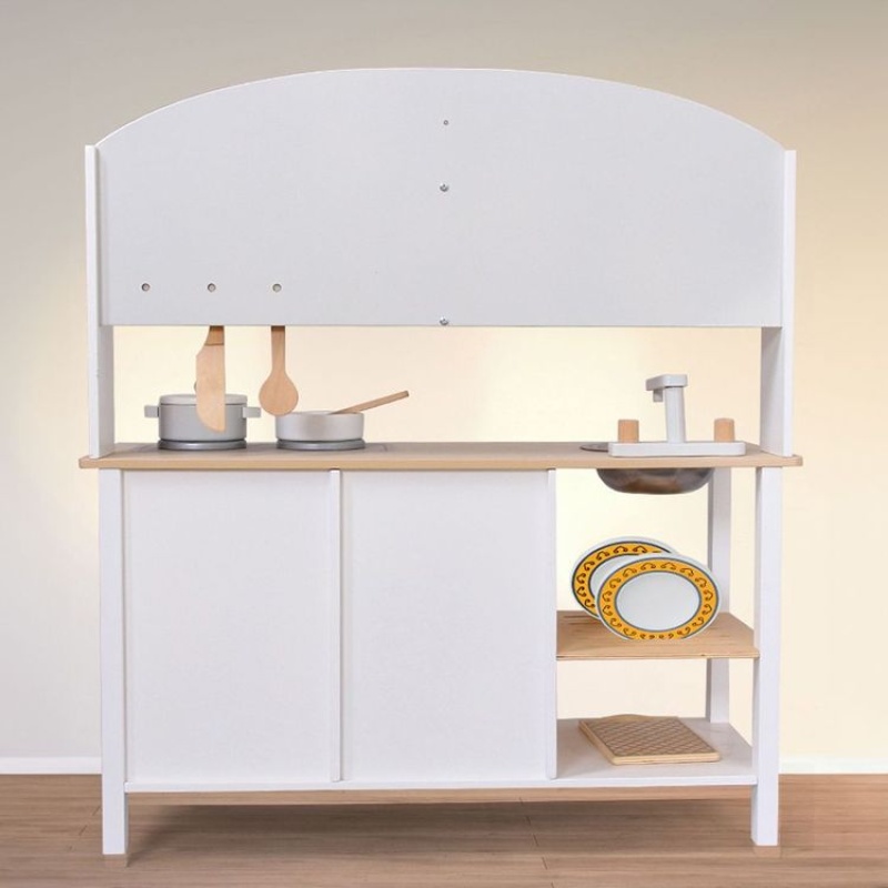 Njezin poseban dizajn, izrađen s ljubavlju i pažnjom prema detaljima. Izrađena od visokokvalitetnog drveta, ova kuhinja nudi trajnost i sigurnost, osiguravajući godine zabave. Njene realistične površine i intuitivno dizajnirani elementi omogućuju djeci da se upuste u vlastite kulinarske avanture, potičući ih na kreativnost i razvijanje motoričkih vještina. Svaki element je pažljivo oblikovan kako bi potaknuo dječju maštu i omogućio im da se osjećaju poput pravih malih kuhara.