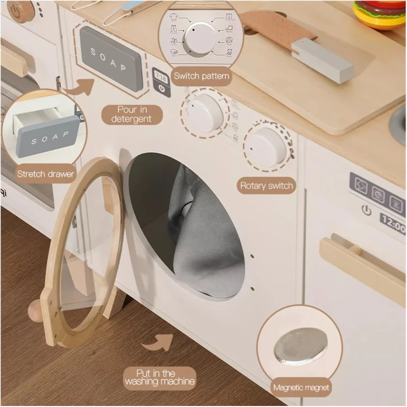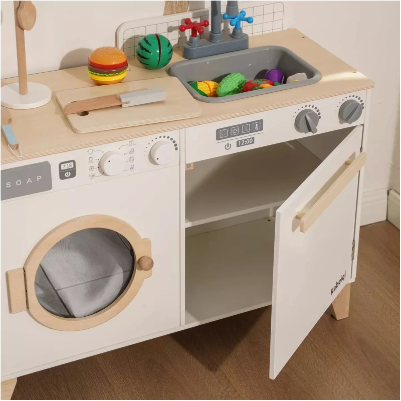 - Dječja drvena kuhinja s mnogo dodataka za sate zabave