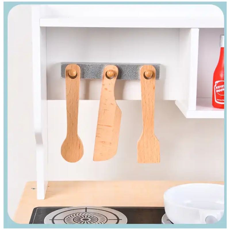 Uz ovu kuhinju dolazi razni kuhinjski dodaci. Djeca se mogu igrati s tim priborom i oponašati proces kuhanja, što pomaže u razvoju motoričkih vještina i koordinaciji oka i ruke.