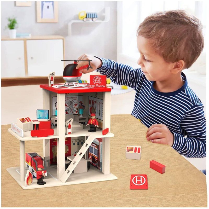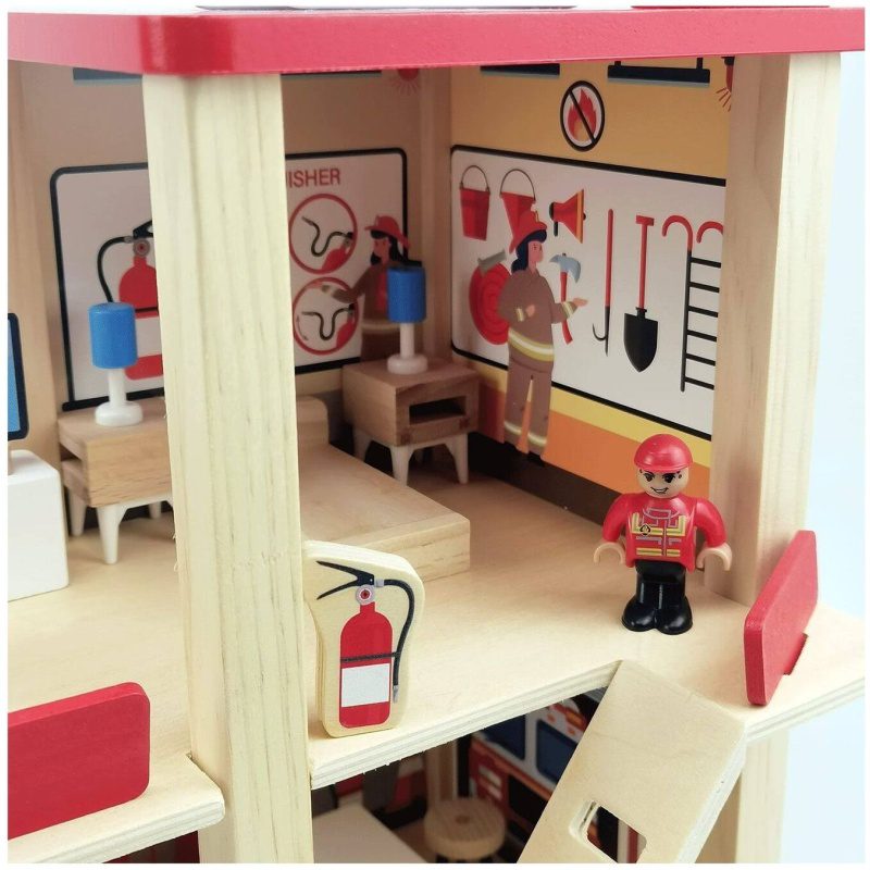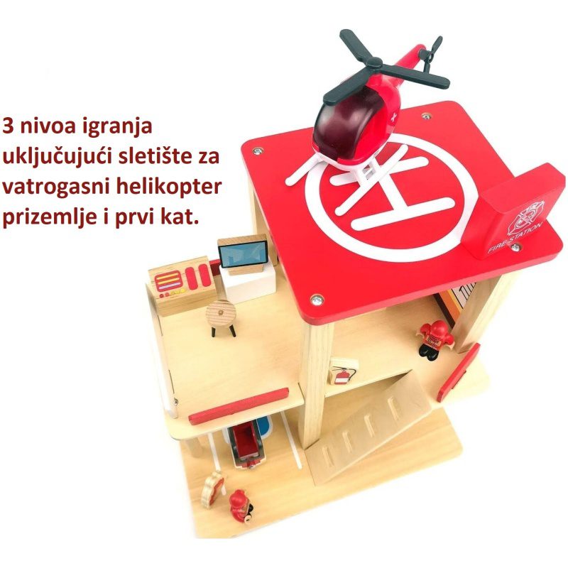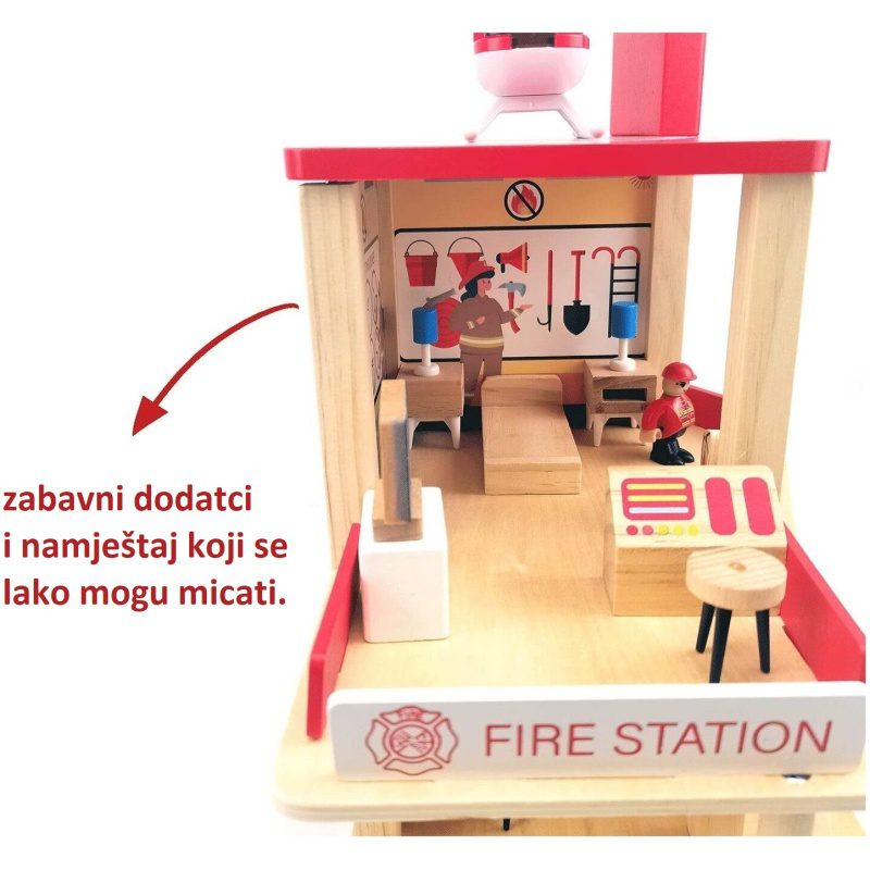 ZABAVNA I EDUKATIVNA IGRAČKA: Bočne i prednje strane stanice na tri razine otvorene su za lak pristup svim područjima stanice i za postavljanje namještaja. Otvoreni dizajn drvene vatrogasne postaje omogućuje da se igra više djece odjednom.