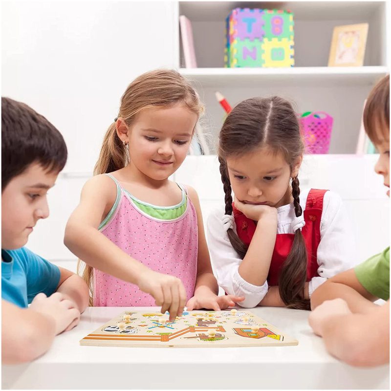 Podučava finu motoriku: drvene slagalice su visoke kvalitete i privlače djecu svih uzrasta u vrtiću. Iznad svega, kompozicija boja je vrlo privlačna. Na prvi pogled jednostavna igračka međutim pravi je izazov za djecu.