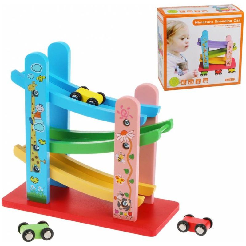 1, 2, 3 krećemo! Ova vesela drvena trkaća staza sadrži i 4 autića pa će se mališani silno zabaviti. Poredajte autiće, jedan po jedan na sam vrh staze, i pustite ih da se utrkaju. Djeca ovo obožavaju!