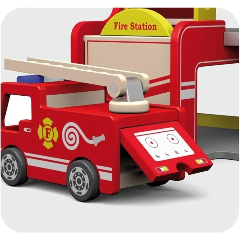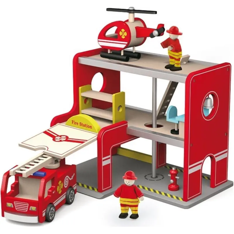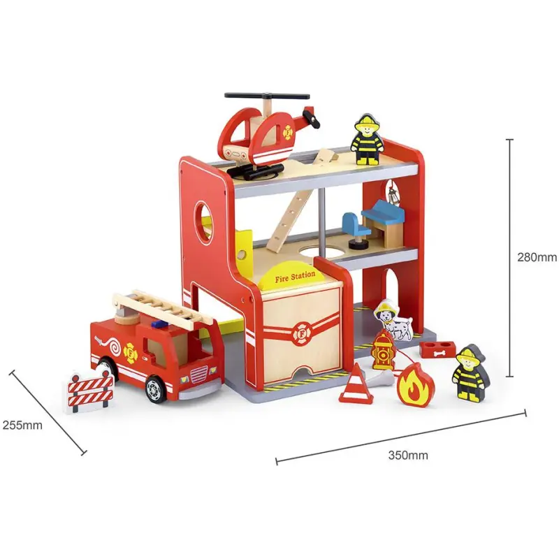 Drvena vatrogasna stanica je jedna od najdivnijih igračaka koja će trajati dugo vremena i pružiti vašem djetetu mnogo godina zanimljive i kreativne igre. To je savršeni poklon za sve one koji žele raditi u vatrogasnoj postrojbi u budućnosti. Dijete može stvoriti mnogo scena igre u kojima će igrati ulogu hrabrog vatrogasca. Vatrogasna stanica je opremljena garažom u kojoj se parkira vatrogasno vozilo. Osim toga, ima prostoriju za odmor vatrogasaca nakon svake akcije. Na vrhu se nalazi heliodrom za helikopter. Kućica je također opremljena cijevima niz koje vatrogasci spuštaju se do požara. Ova igračka će vašem djetetu omogućiti mnogo sati nezaboravne zabave.