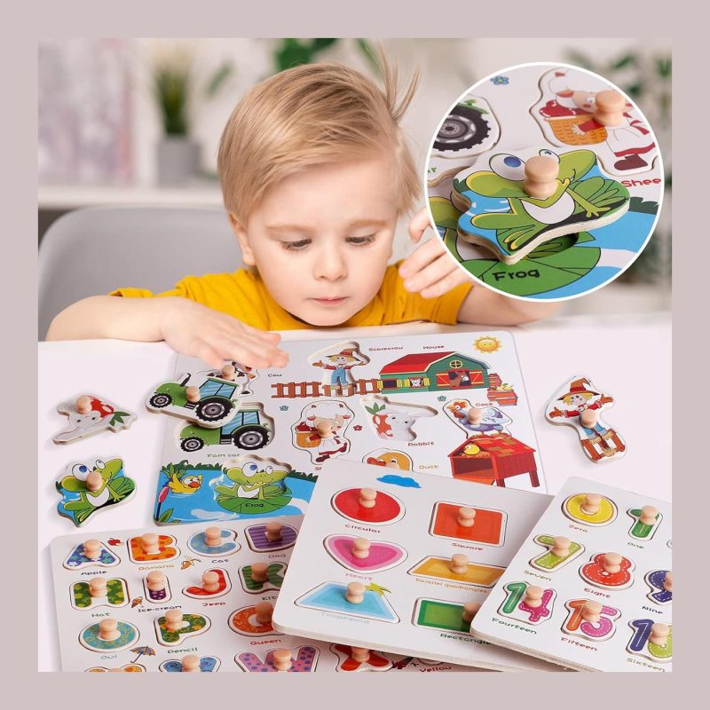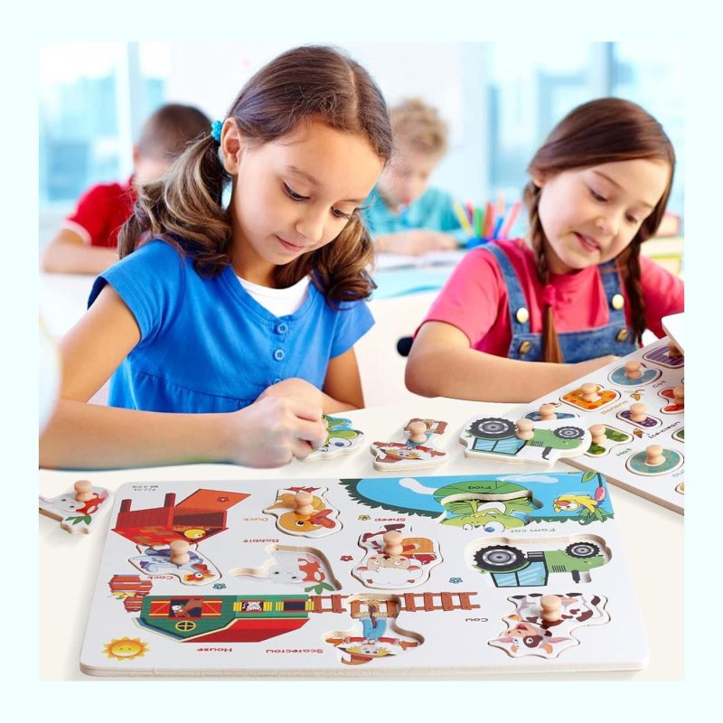 Osim što su zabavne, naše puzzle također pomažu u razvoju inteligencije, imaginacije, kreativnosti i praktičnih vještina kod djece. Dizajnirane su kao idealan alat za učenje, s natpisima i slikama ispod svakog bloka koji pomažu djeci da nauče oblike i životinje.