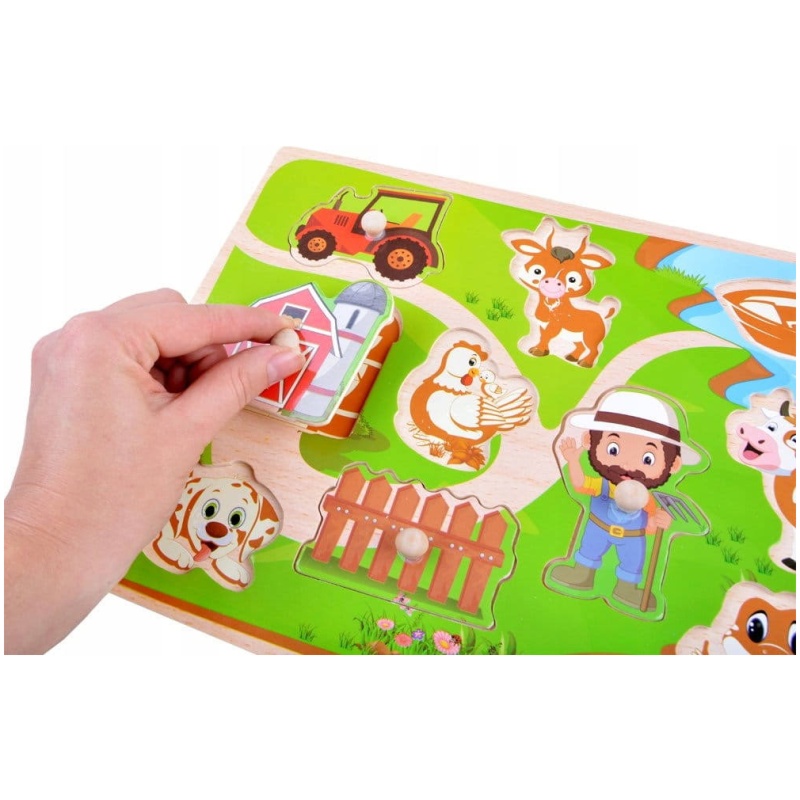 Ova drvena slagalica je odličan izbor za djecu svih uzrasta. Neka se vaše dijete igra i uči istovremeno s ovom kvalitetnom igračkom. Neka otkrije čaroliju seoske farme i životinja koje tamo susreće.
