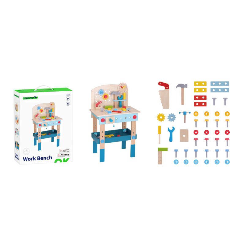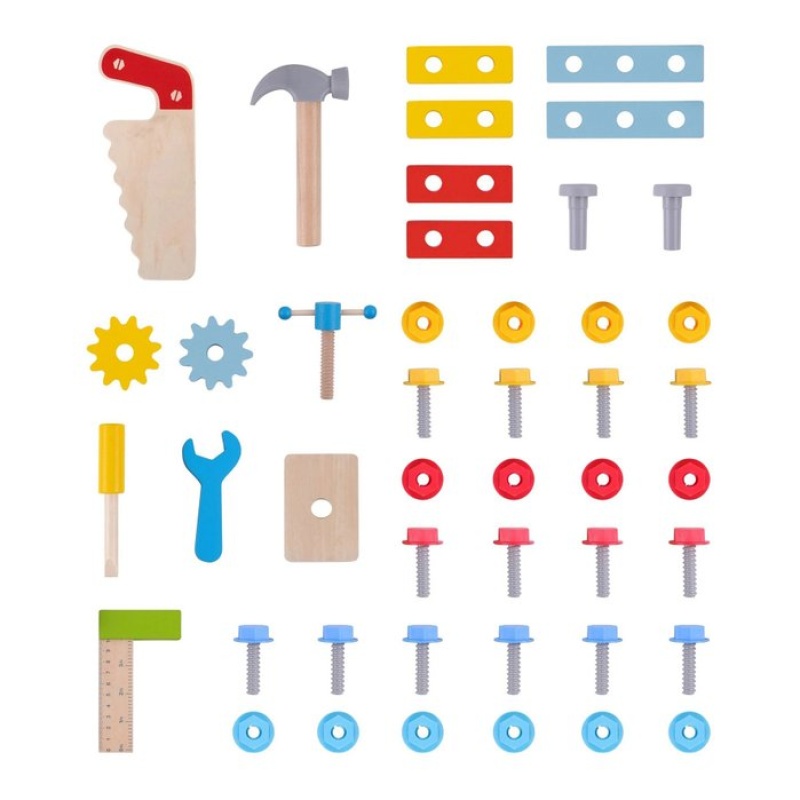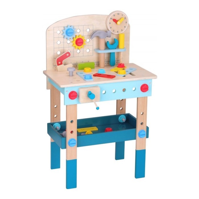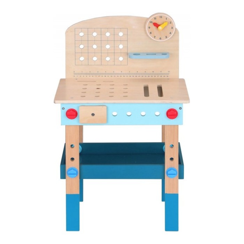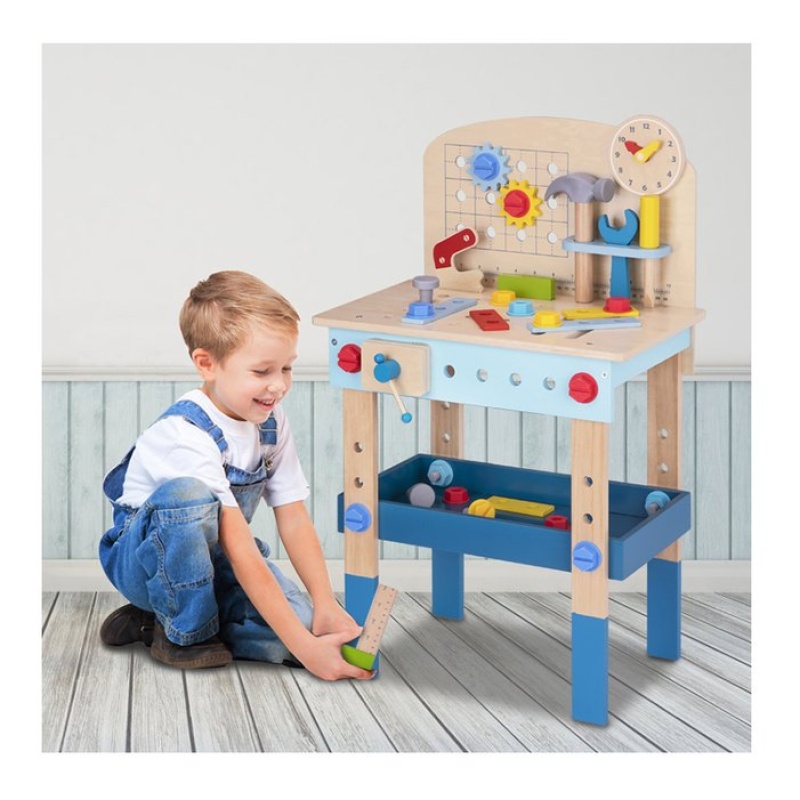 Izrađena od visokokvalitetnog drveta, ova radionica je čvrsta i dugotrajna, što je čini savršenom za male ruke koje vole stvarati. Set uključuje sve što je potrebno za satima zabave – od odvijača, čekića, kliješta do raznih vijaka i matica. Svaki alat je dizajniran s pažnjom prema detaljima, osiguravajući autentično iskustvo koje pomaže djeci razvijati fine motoričke vještine i tehničko razumijevanje.