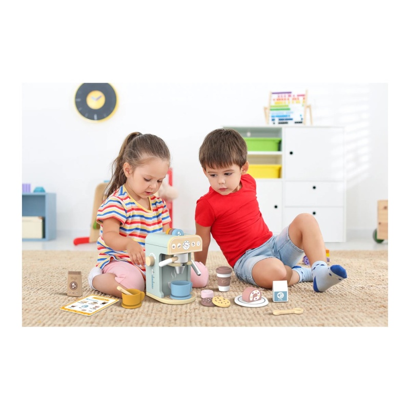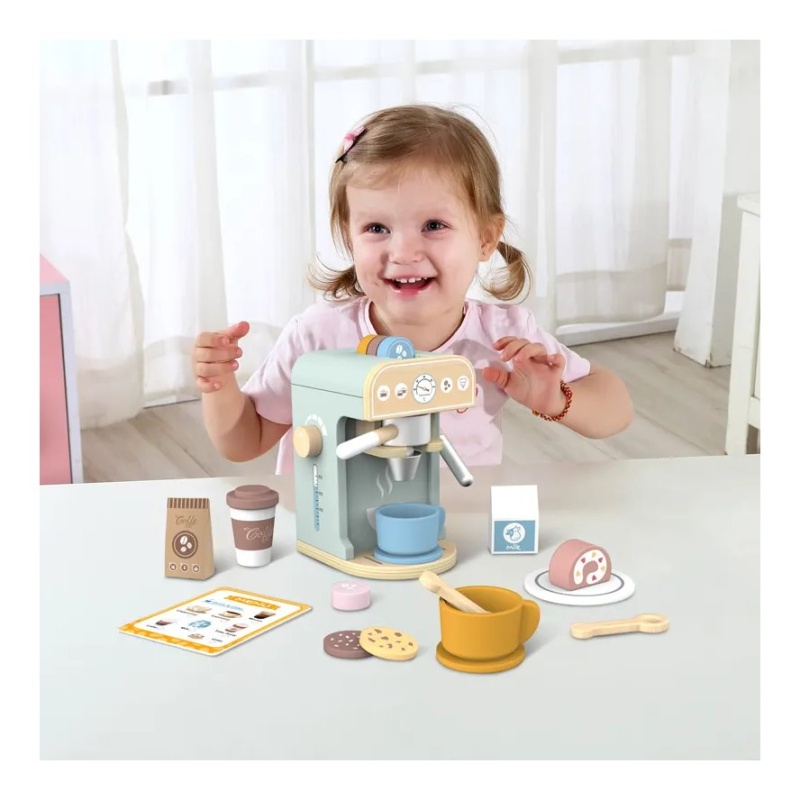 Zamislite kako se vaše dijete uživljava u ulogu malog bariste, stvarajući vlastite priče i igre. Drveni aparat za kavu dolazi u paleti veselih, prilagodljivih boja koje potiču vizualnu stimulaciju i kreativno izražavanje. Također, njegova ekološka konstrukcija od drva i drvo-plastike čini ga savršenim za roditelje koji se brinu o okolišu.
