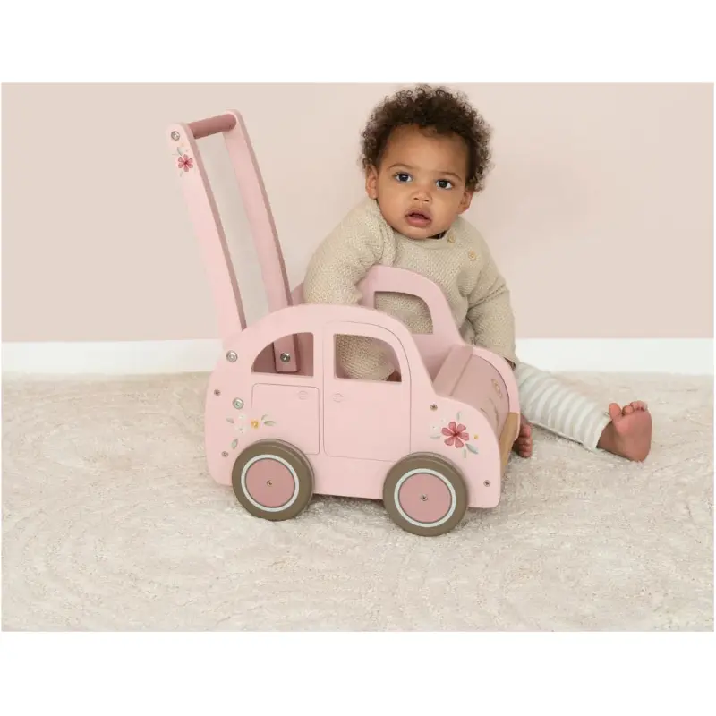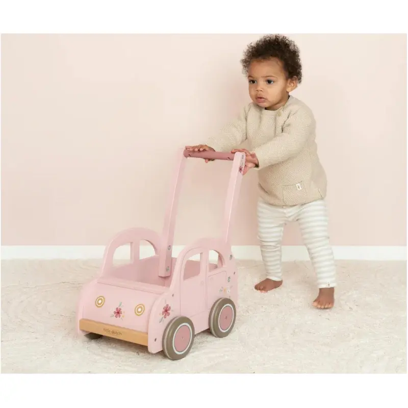 Zamislite svoje dijete kao vozača ovih predivno dizajniranih kolica za guranje, ukrašenih suptilnim cvjetnim detaljima koji dodaju dašak vintage šarma. Ova kolica ne samo da su fantastična pomoć pri hodanju, već služe i kao predivna kutija za igračke. Vaš mališan može ih ispuniti svojim omiljenim igračkama, potičući time maštovitu igru unutar kuće ili ih nositi sa sobom na šetnje!