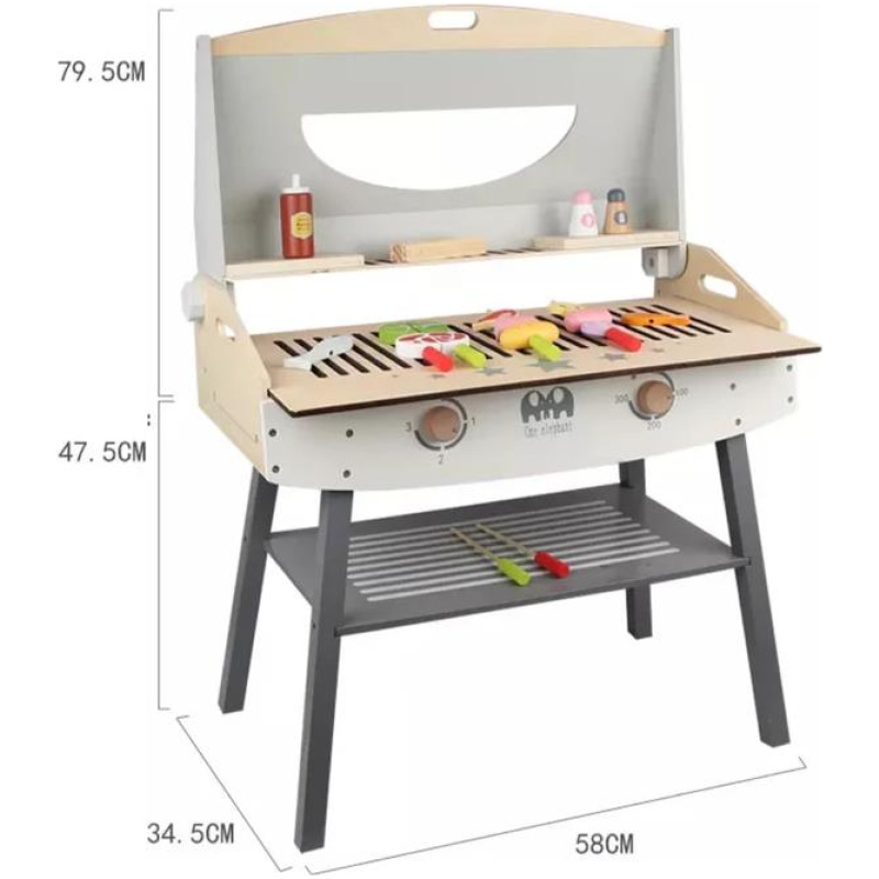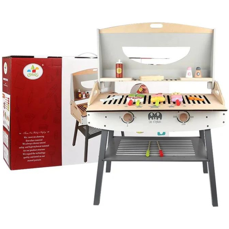 Sigurnost je na prvom mjestu. Zahvaljujući zaobljenim rubovima i glatkim površinama, ova igračka roštilj garnitura osigurava da nema ogrebotina. Dodatne bočne sigurnosne brave i čvrste drvene noge osiguravaju stabilnost tijekom igre. Osim toga, ima tri razine za pohranu kako bi sve bilo lako dostupno, što čini ovu garnituru prikladnom za igru i u zatvorenom i na otvorenom prostoru. Za djecu stariju od 3 godine, ova igračka roštilj garnitura također je edukativna jer poboljšava sposobnost sortiranja, vještine brojanja, kreativnost i pripovijedanje priča.