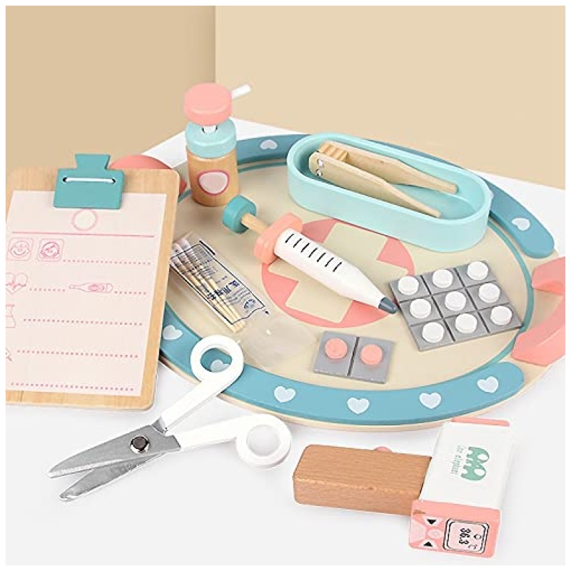 Za djecu koja obožavaju igru doktora pripremili smo predivan drveni doktorski set u nježnim pastelnim bojama u kombinaciji s bojom drveta!  Kroz igru doktora djeca uče da se ne boje lječničkih pregleda i razvijaju osjećaj nježnosti, empatije i humanosti.