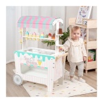 Ono što čini Drveni Ice Cream Market posebnim nije samo njegov šarmantan dizajn s platnenim baldahinom i privlačnim uzorcima, već i njegova funkcionalnost. Opremljena gornjim policama za izlaganje, odjeljkom za zamrzavanje s kliznim vratima i donjim dijelom za izlaganje, ova prodajna stanica pruža realistično iskustvo koje potiče maštu i kreativnost. Izrađena od visokokvalitetnog punog drva i MDF ploča, ova igračka nije samo zabavna, već i izdržljiva, osiguravajući dugotrajnu igru i razvoj novih vještina kod djece.
