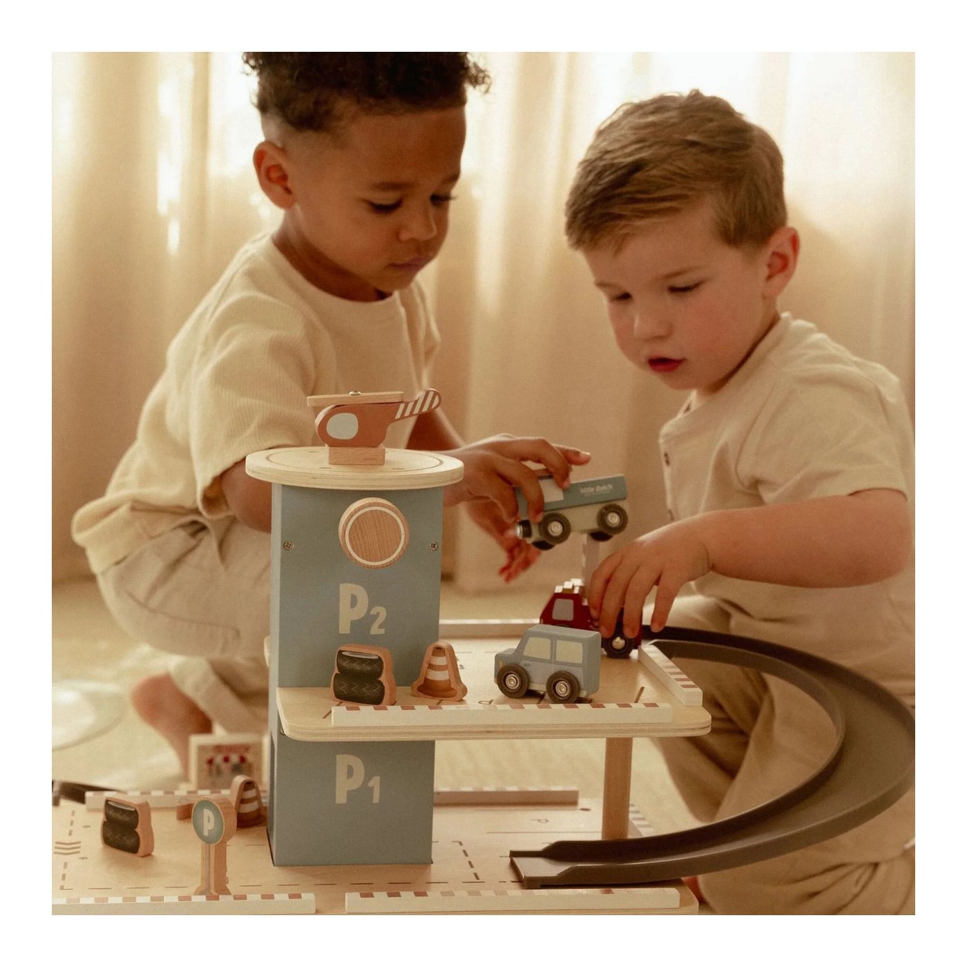 Što čini Little Dutch garažu tako posebnom? No, čak i sama po sebi, garaža nudi sate i sate zabave. Osim što je izrađena od visokokvalitetnog FSC certificiranog drveta, obojana je bojama na bazi vode koje su potpuno sigurne za djecu. Igračka dolazi s tri automobila, helikopterom i brojnim dodatcima poput prometnih znakova i guma. Svi ovi elementi osiguravaju da svaka igra bude drugačija i uzbudljiva.