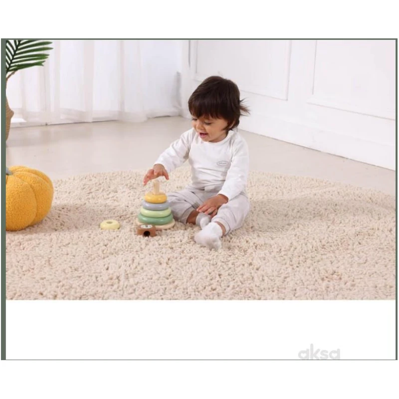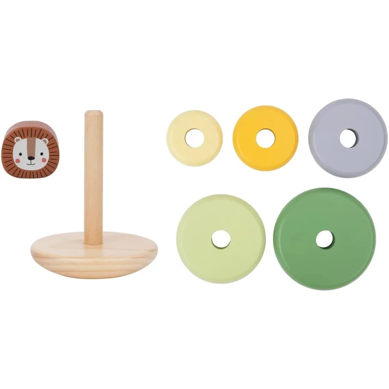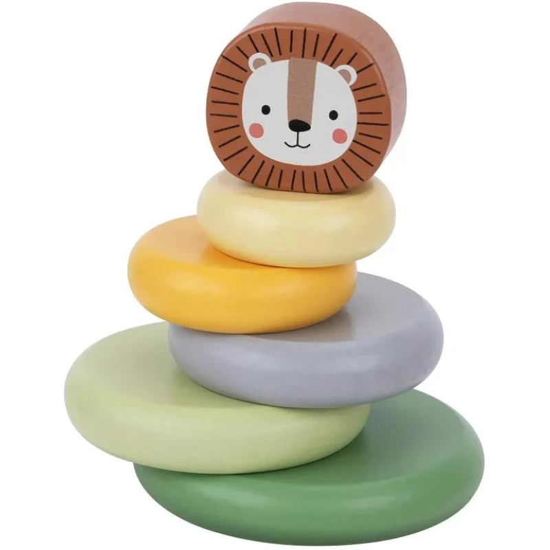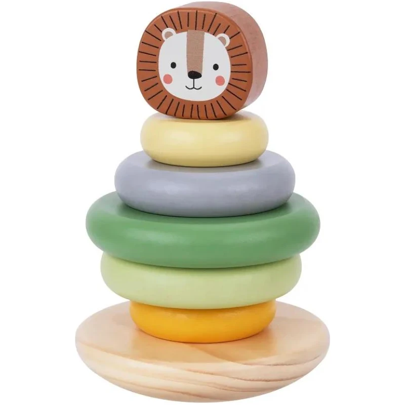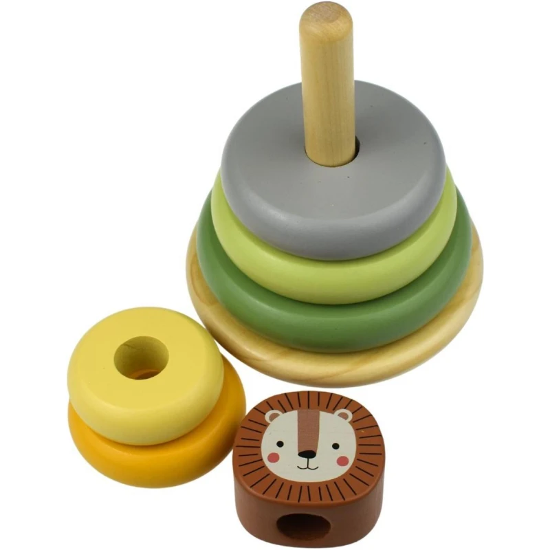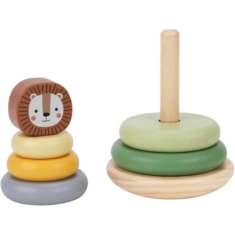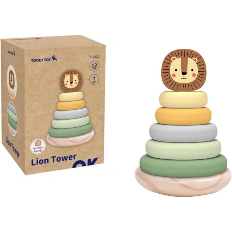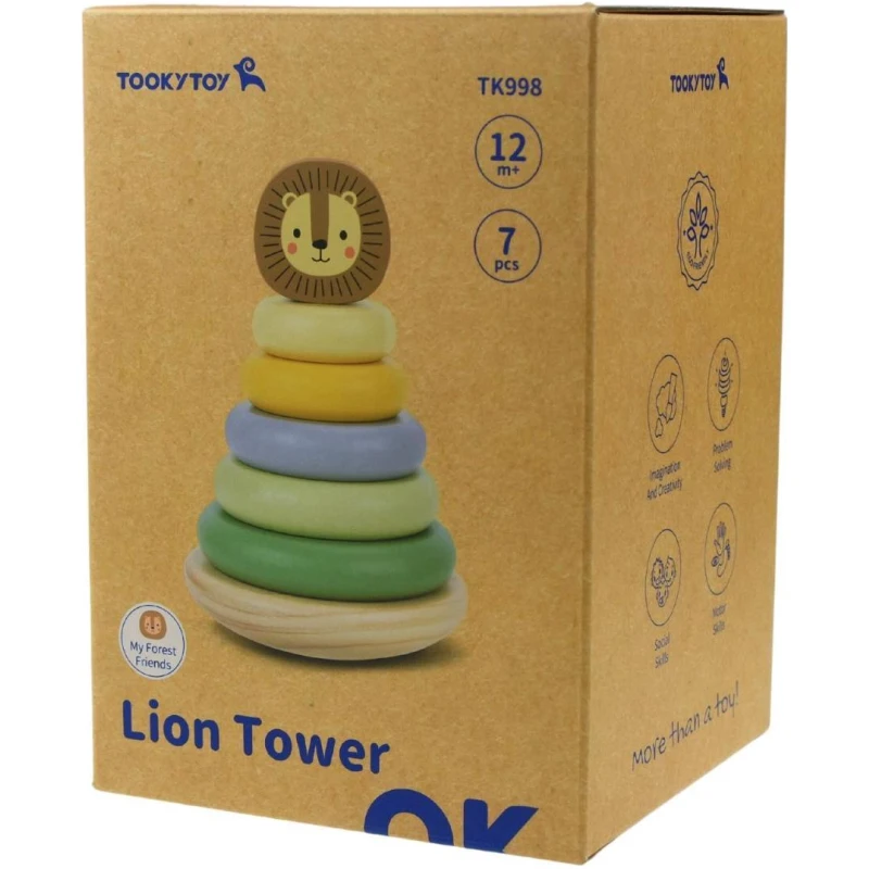 Ova drvena Lavova kula od Tooky Toy-a stvorena je kako bi pružila sate zabave i učenja djeci od 12 mjeseci pa nadalje. Lavova kula sadrži pet šarenih drvenih prstenova koji se slažu na zakrivljenu drvenu bazu. Jedinstvena zakrivljena konstrukcija omogućuje kuli da se ljulja i njihuje, dodajući dodatnu razinu zabave prilikom slaganja. Na vrhu kule nalazi se simpatično drveno lice lava, dodajući mu šarm i privlačnost. Lavova kula pomaže djeci razvijati koordinaciju oka i ruke dok pokušavaju složiti prstenove u pravilnom redoslijedu. Također potiče rješavanje problema jer djeca pokušavaju shvatiti koji prsten ide gdje, te poučava djecu o prepoznavanju veličine i boje dok usklađuju prstenove s odgovarajućom bazom. Na kraju, ljuljanje kule poboljšava motoričke vještine jer djeca balansiraju i drže igračku. Sveukupno, ova drvena kula za slaganje je izvrsna edukativna i zabavna igračka za malu djecu.